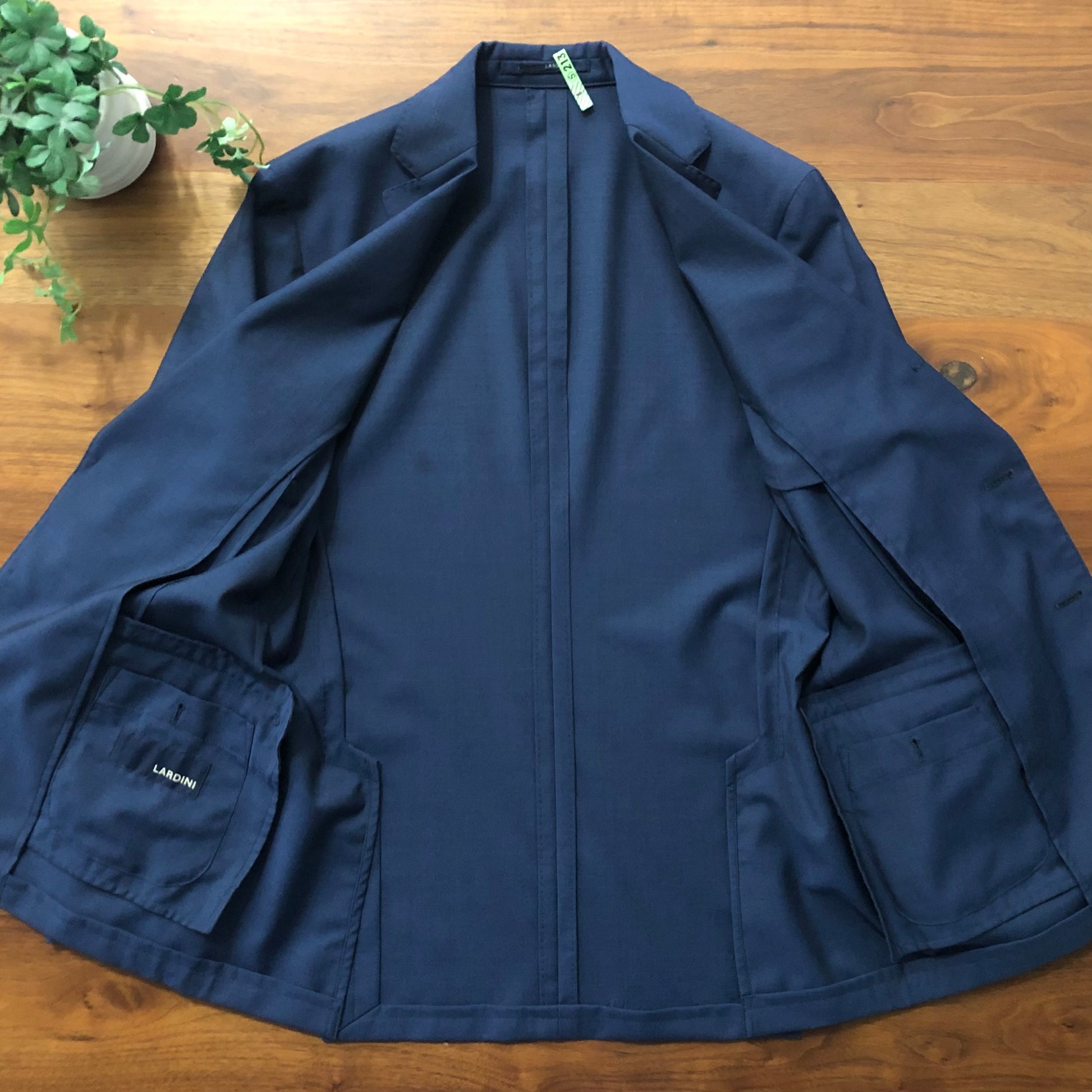 ラルディーニが誇る無地ネイビーのシングルスーツ。表地には上質なウール100%を使用し鮮やかな色合いと滑らかな手触りが絶対的な高級感を放ちます。裏地を排した軽量な仕立て(アンコンストラクテッド)とイタリアのサルトリア技術が融合し、まるでシャツのような柔らかな着心地を実現。ビジネスシーンと、週末のパーティースタイルを両立する究極のネイビースーツです。