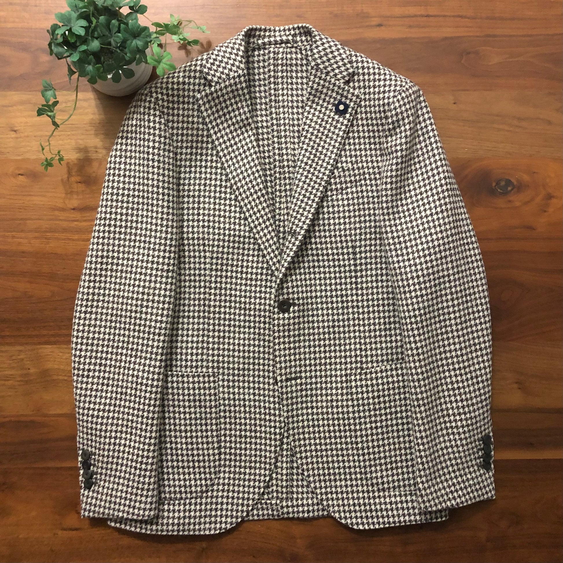 LARDINIラルディーニ千鳥格子オフホワイト×ブラウンジャケット46