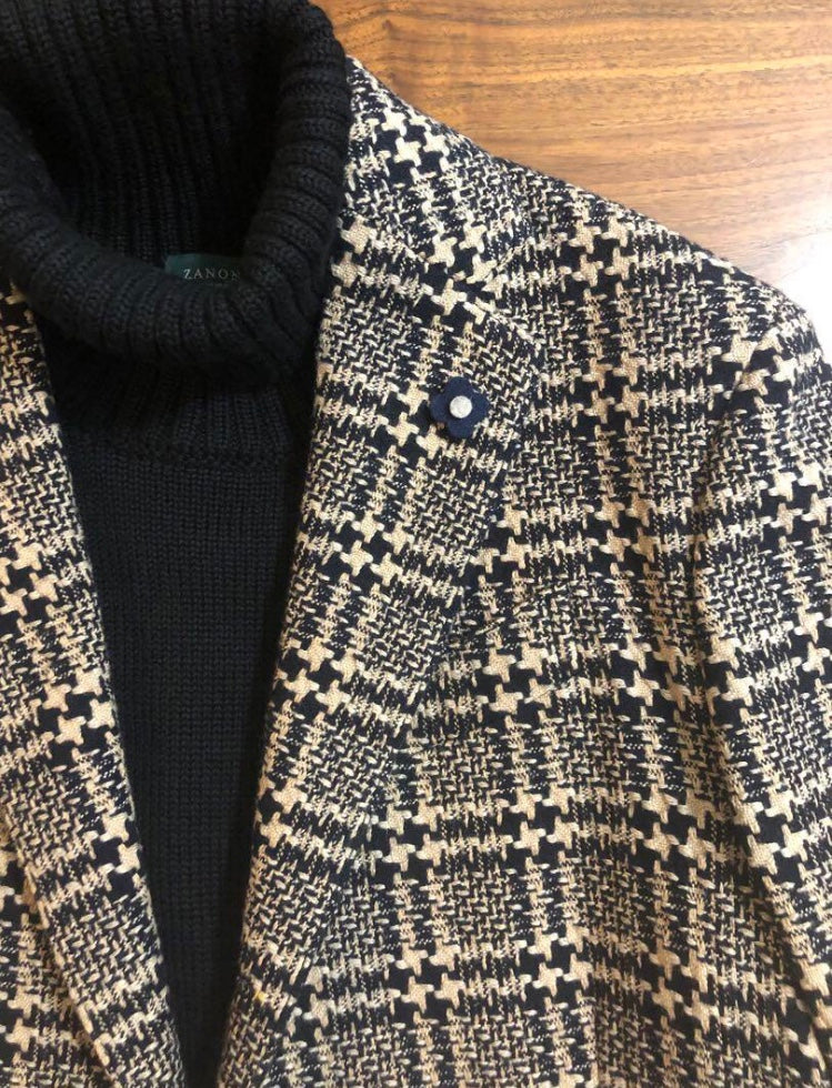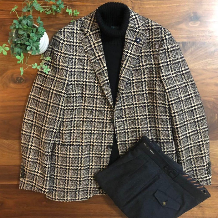 LARDINIラルディーニ総柄ベージュ×ブラック大判チェックジャケット